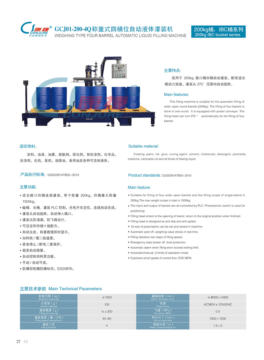 GCJ01-200-4Q稱重式四桶位自動液體灌裝機