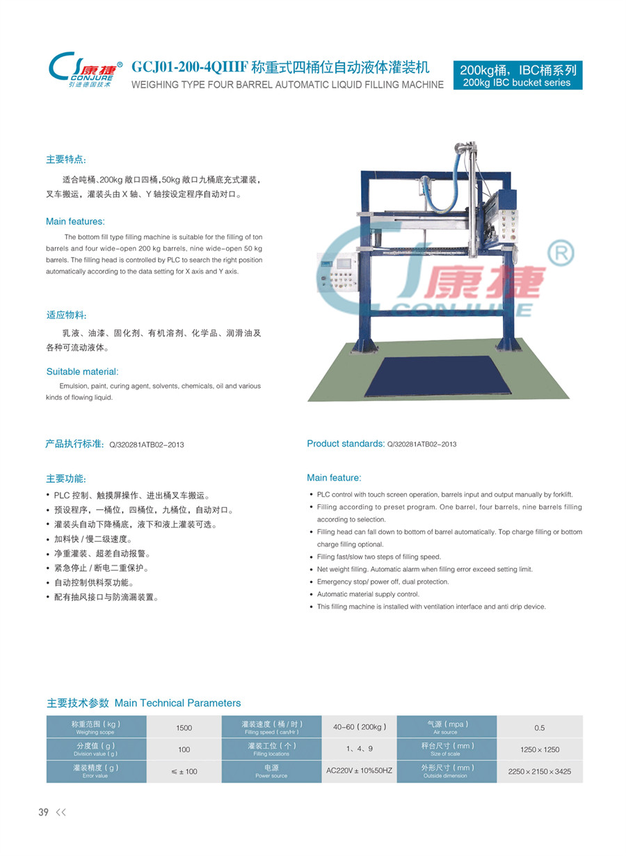GCJ01-200-4QIIIF稱重式四桶位自動液體灌裝機